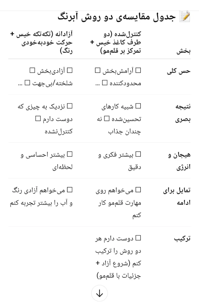 یک دفترچه ثبت ایدهها و احساسات و نکات مربوط به نقاشی و تجربیات آبرنگیمان در این مسیر بسیار کمک میکند.